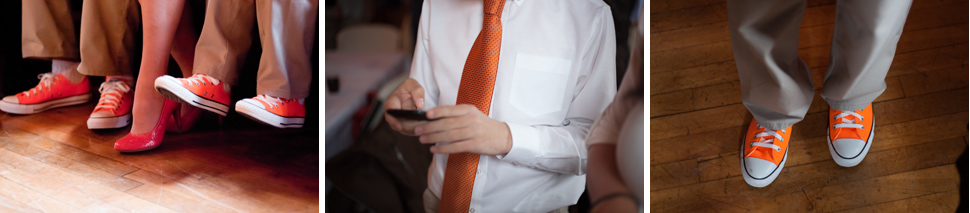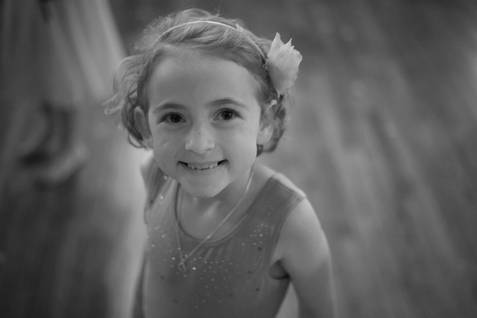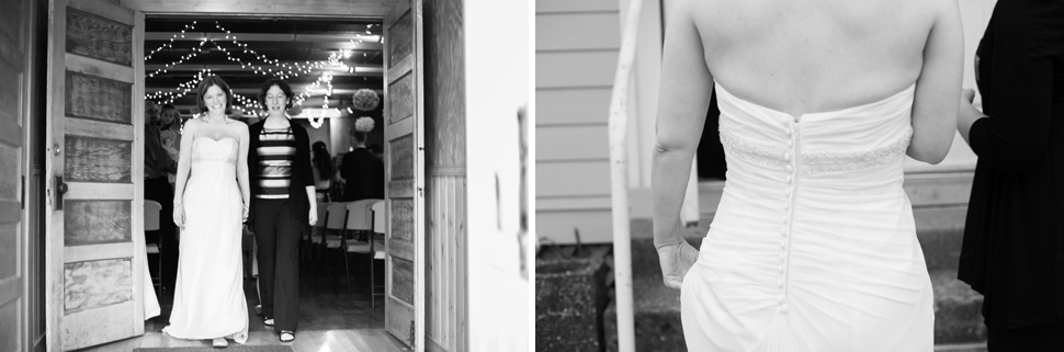 Once everything was set up at the community center, we all headed over to Sarah’s mother’s house just down the road. The house was full of family members and friends getting ready for the big celebration. While Sarah was downstairs getting ready, Darcie was upstairs putting on her dress and her grandmother’s pearl necklace. Once everyone was all gussied up, the two brides came outside for their first look. The brides stood back-to-back, anxious to see each other. On the count of three the brides turned around. They were both so happy to see each other, smiling, laughing and sneaking kisses. It was incredibly touching.